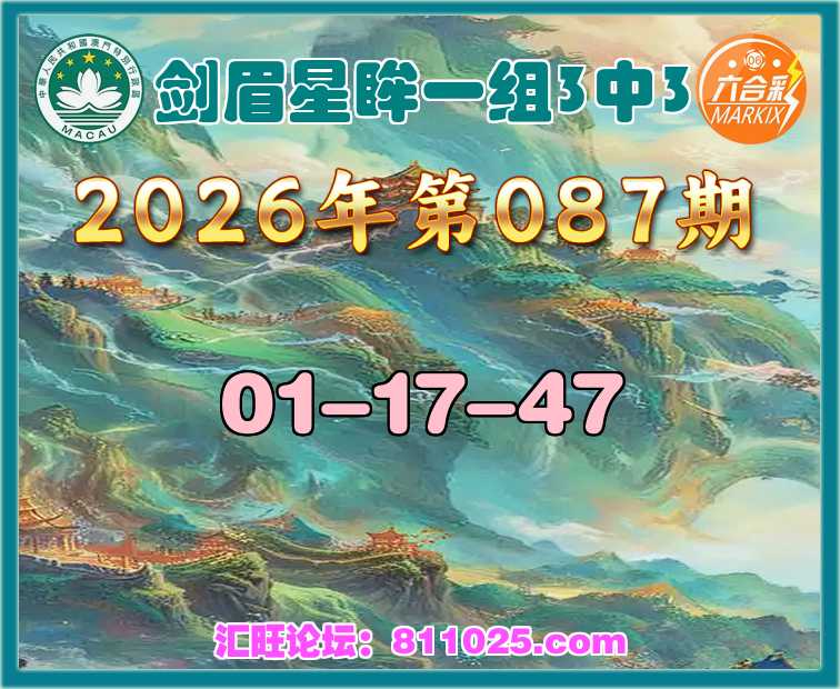 087期:『剑眉星眸』 🏅一组3中3🏅【01-17-47】