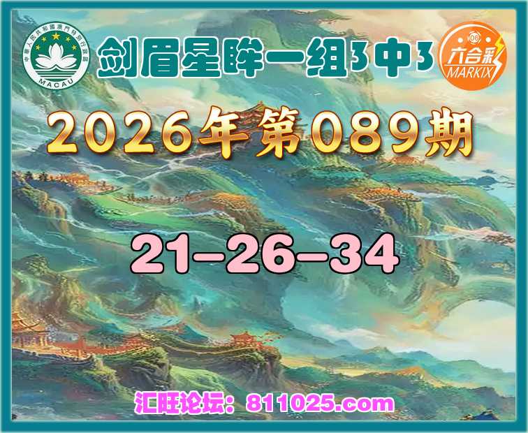 089期:『剑眉星眸』 🏅一组3中3🏅【21-26-34】