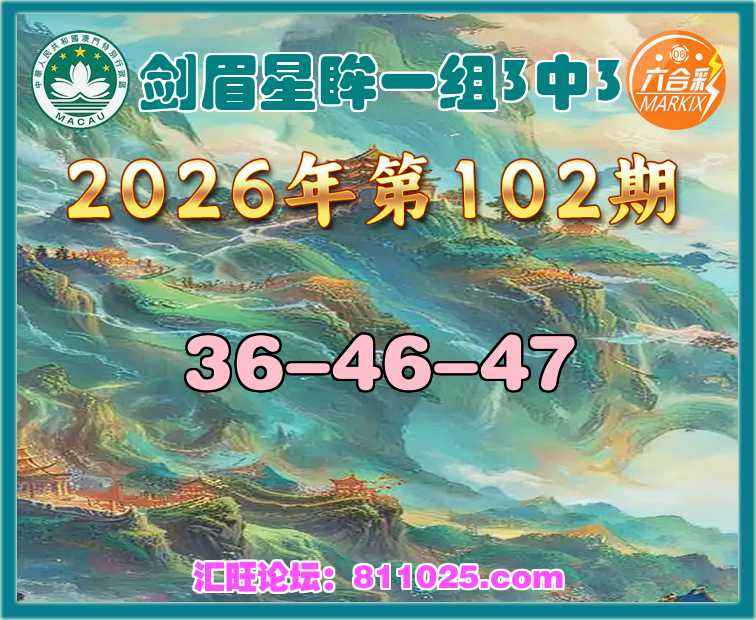 102期:『剑眉星眸』 🏅一组3中3🏅【36-46-47】