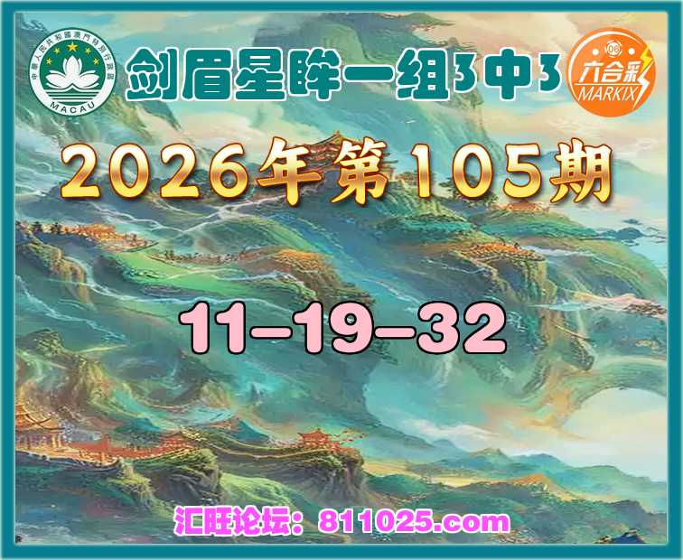105期:『剑眉星眸』 🏅一组3中3🏅【11-19-32】